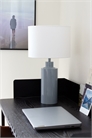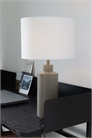 Настольная лампа на матовом черном основании с цилиндрическим белым абажуром. Абажур шириной 25 см и высотой 25 см оснащен фиксированным цоколем E27. Высота основания лампы составляет 32 см, общая высота - 55 см. Черный кабель длиной 1,7 м с выключателем и плоской вилкой ЕС. Цоколь E27. Макс. мощность 40 Вт. IP20. Лампочка в комплект не входит.
