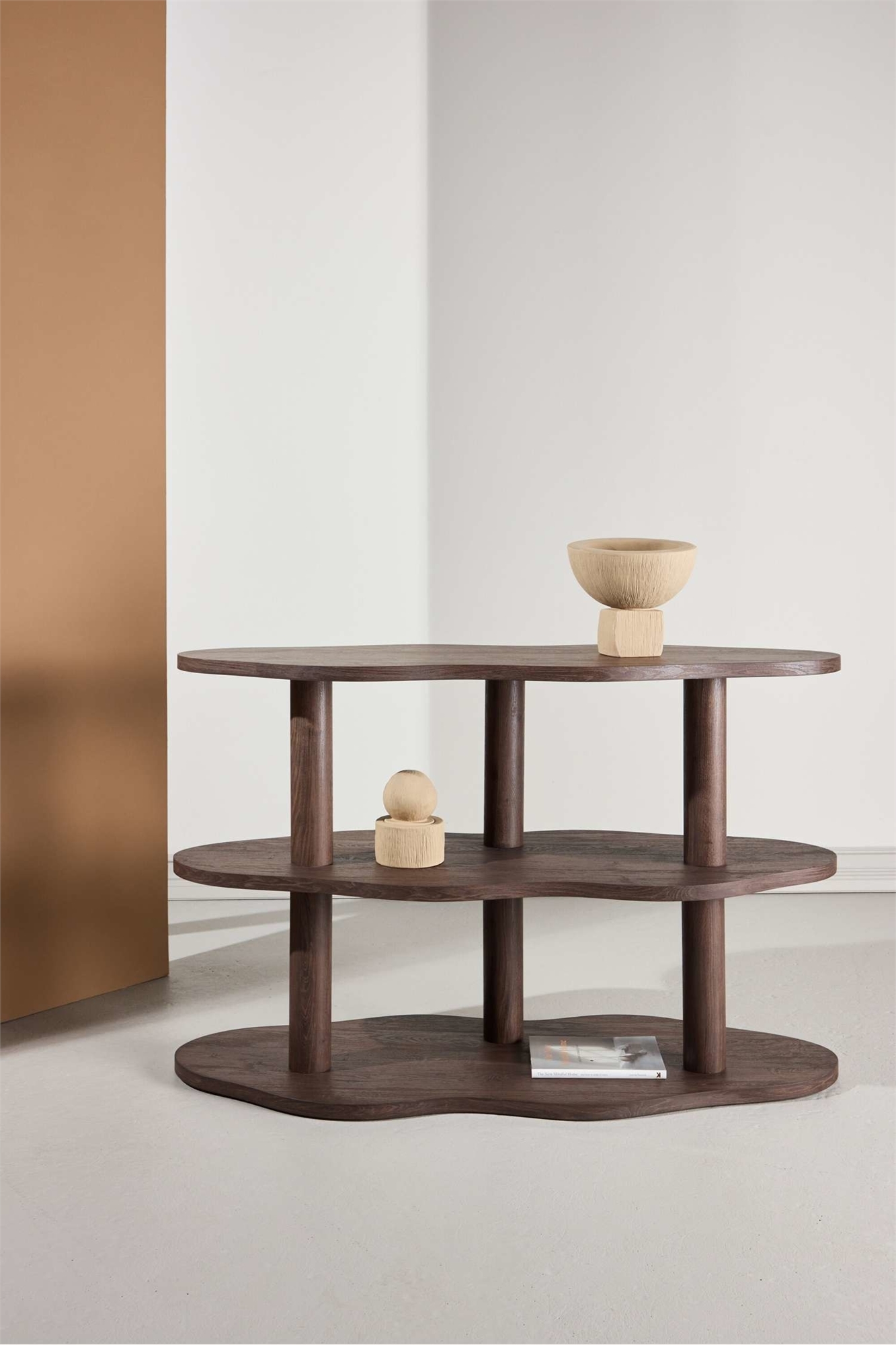 Поприветствуйте Moln - полку, которая может не только хранить вещи. Благодаря трем уровням в элегантной изогнутой форме, Moln предлагает дизайн, который одновременно игривый и изысканный, а теплый цвет мокко подчеркивает мягкое впечатление и делает полку гармоничным элементом в любой комнате - будь то гостиная, прихожая или спальня. Идеально подходит для книг, украшений или личных вещей, которые вы хотите стильно разместить.Размеры: глубина: 45 см, высота: 75 см, ширина: 120 см