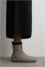 Осень Зима 2025 поднимает современный гардероб на новую высоту: воплощение спокойной уверенности. Эти современные ботинки-носки изготовлены из тактильного трикотажа и украшены узором в клетку, вдохновленным историей. Они имеют тонкую форму с закругленными квадратными носками и низкий каблук, металлическую молнию и удлиненные кожаные язычки. Застежка-молнияCOS поддерживает ответственное производство через Leather Working Group Верх: 80% полиамид (нейлон), 20% эластан. Подкладка и подошва: 100% кожа. Без учета отделки