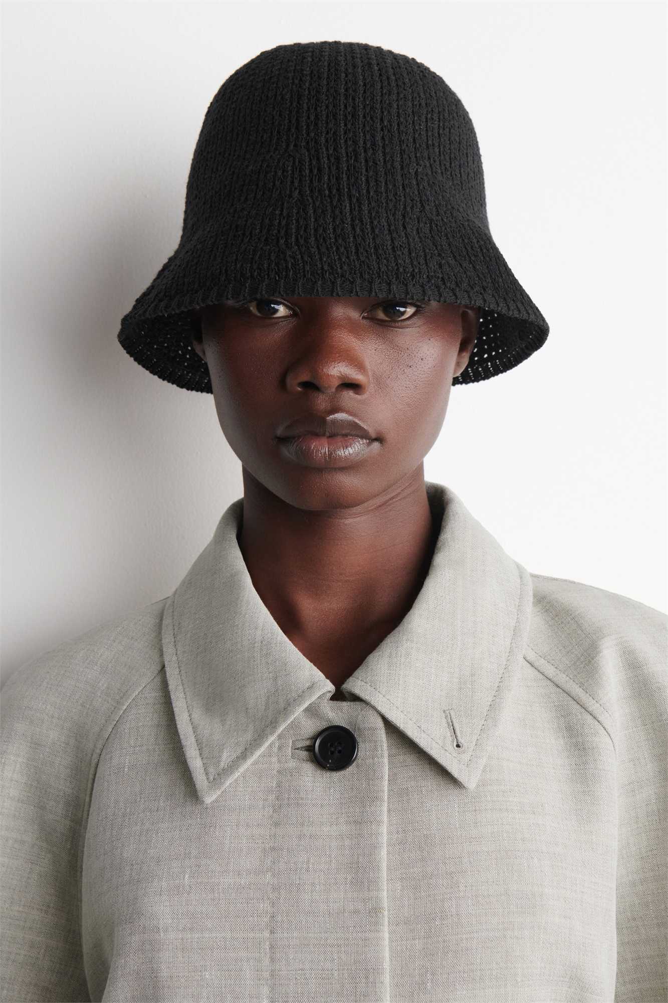 Эта изысканная шляпа-котелки, представляющая собой незаменимый элемент гардероба, связана из смесовой хлопковой пряжи с добавлением шелка, что придает ей мягкость. Модель выполнена дышащим узором с открытыми петлями и отличается округлой, скульптурной формой.