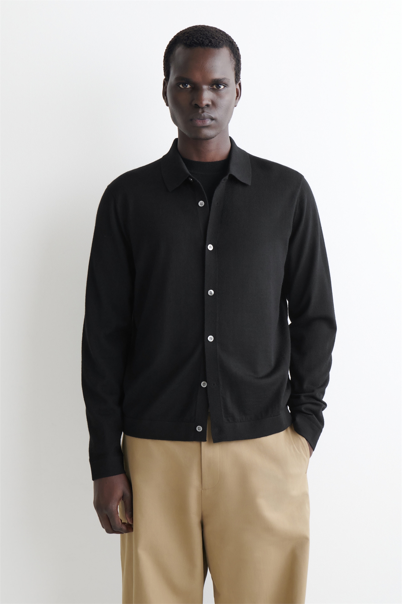Команда COS по созданию мужской одежды — эксперты в создании идеальных базовых вещей для гардероба. Эта современная рубашка связана из высококачественной мериносовой шерсти и украшена аккуратными пуговицами в форме ракушек и ребристыми манжетами, которые сохраняют свою форму. Вы будете носить ее сезон за сезоном.Регулярный крой. Застежка на пуговицах. Материал: 100% мериносовая шерсть. За исключением отделки. Машинная стирка. Длина спинки размера M составляет 64 см. На модели одета одежда размера M.