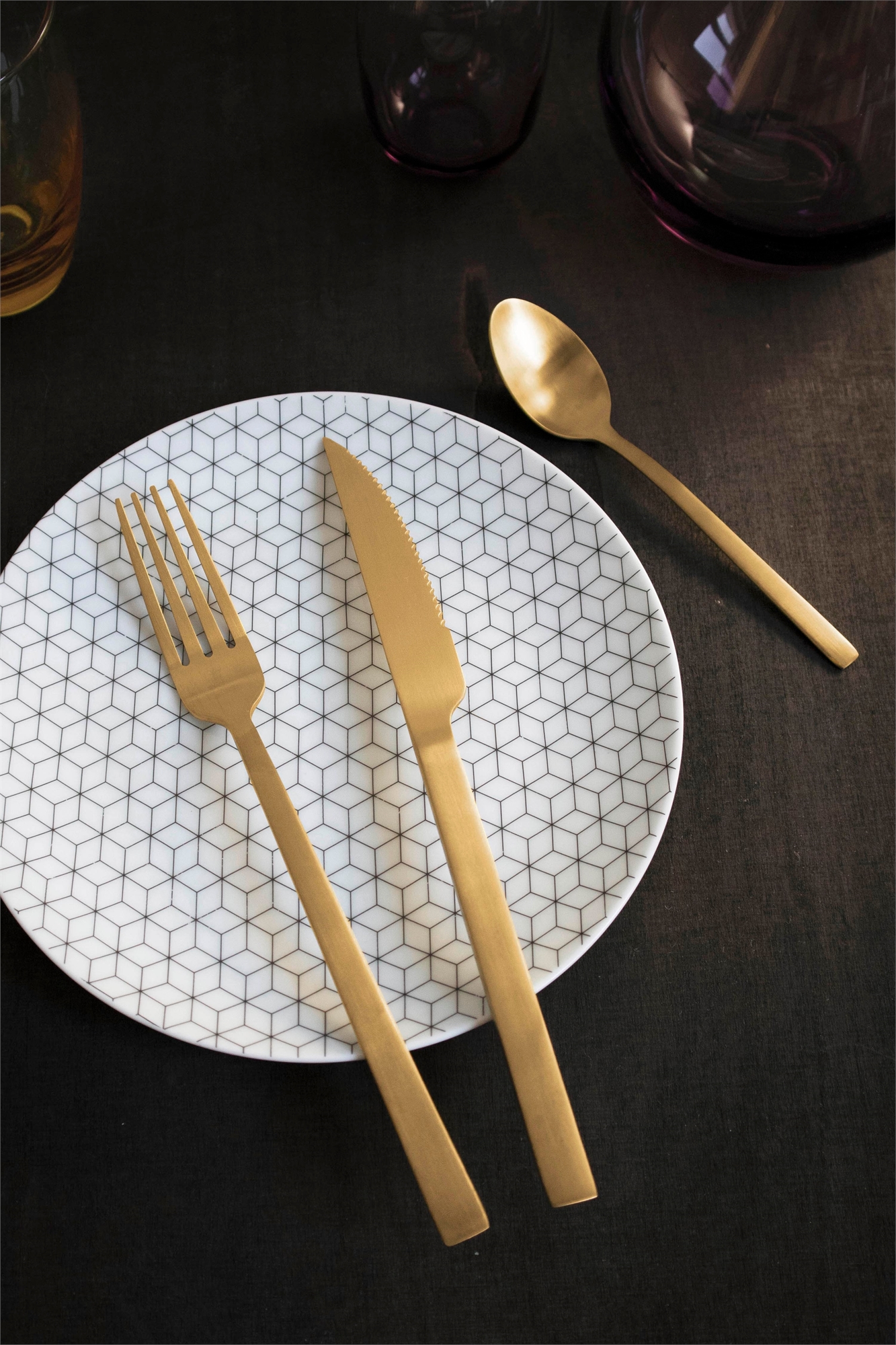 Модель столовых приборов Knight отличается квадратным и строгим дизайном с современным сатиновым покрытием, что делает ее идеальным выбором для неформальной повседневной обстановки. Набор состоит из 24 предметов и включает 6 вилок (21 см), 6 ложек (21 см), 6 ножей (22 см) и 6 ложек для чая/кофе (14,5 см). Материал - безникелевая нержавеющая сталь 18/0 толщиной 3 мм.