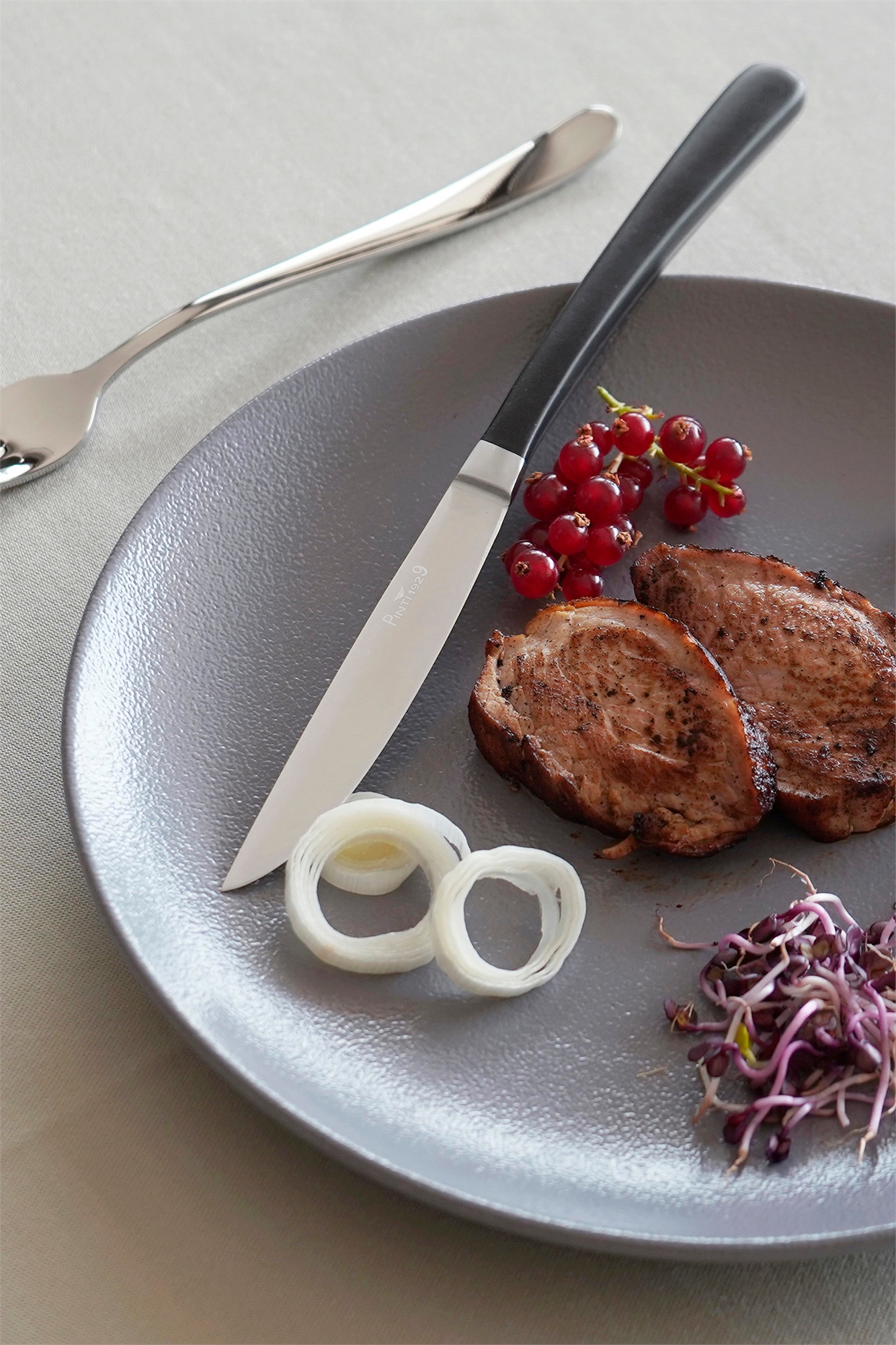 Ножи для стейков Kobe изготовлены из высококачественной нержавеющей стали, которая обеспечивает точность и долговечность нарезки. Рукоятка из POM обеспечивает надежный и удобный захват. Каждая деталь этого ножа выполнена с точностью, обеспечивающей безупречную отделку.