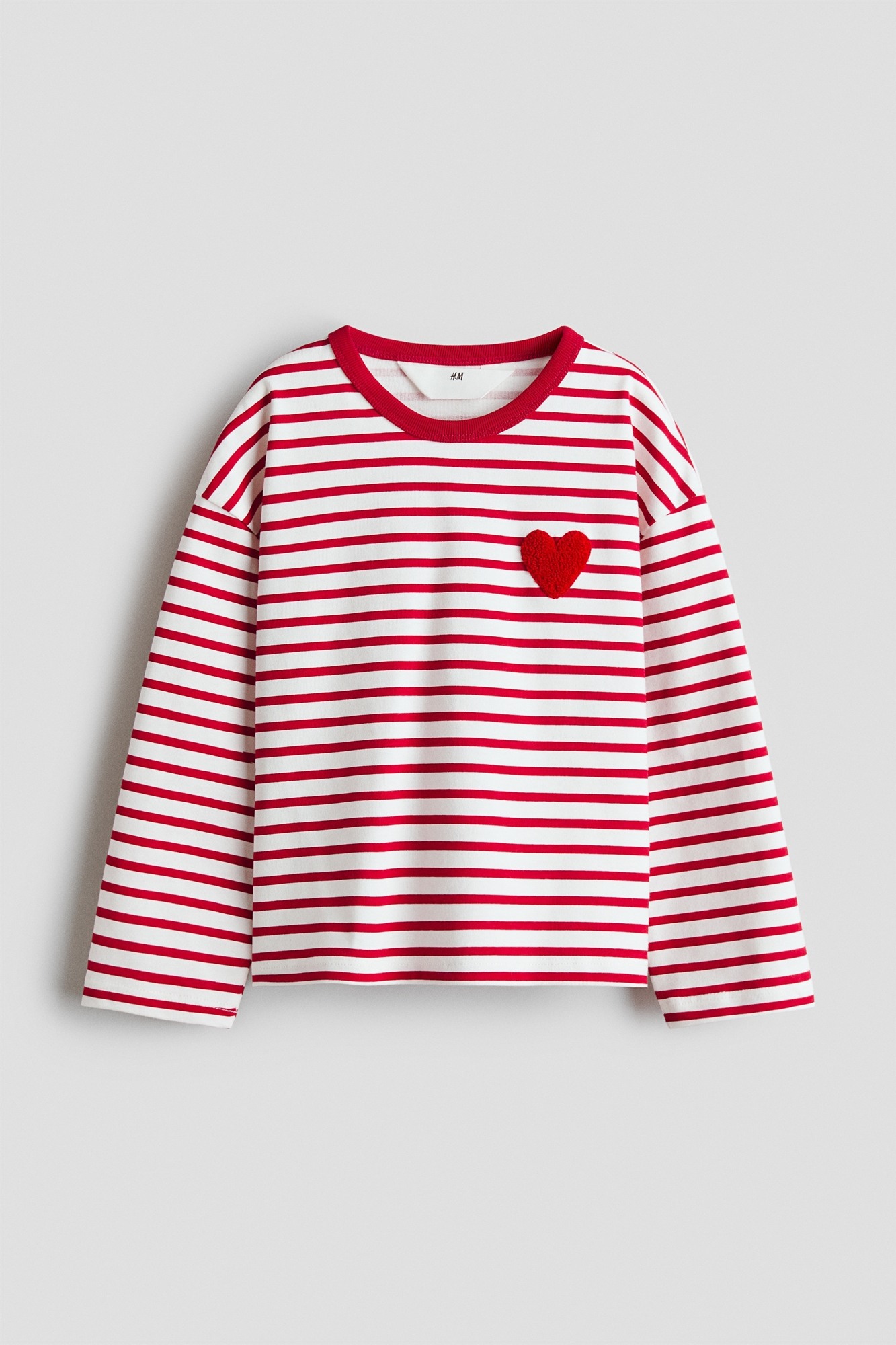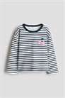 Футболка с длинными рукавами из мягкого хлопкового джерси с небольшой махровой аппликацией спереди. Круглый вырез с ребристой отделкой и спущенные плечи.
