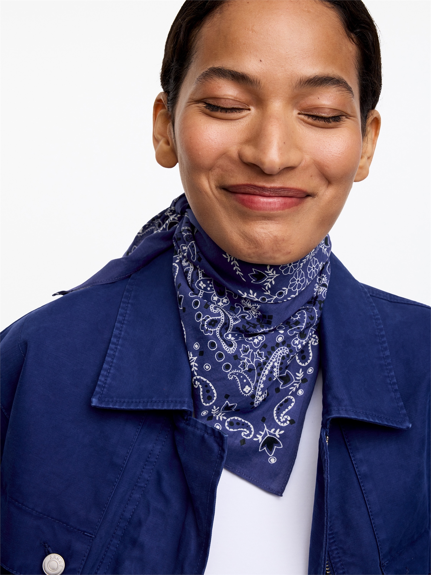 Квадратный хлопковый шарф с уникальным принтом ARKET. Размеры: 57 × 57 см.