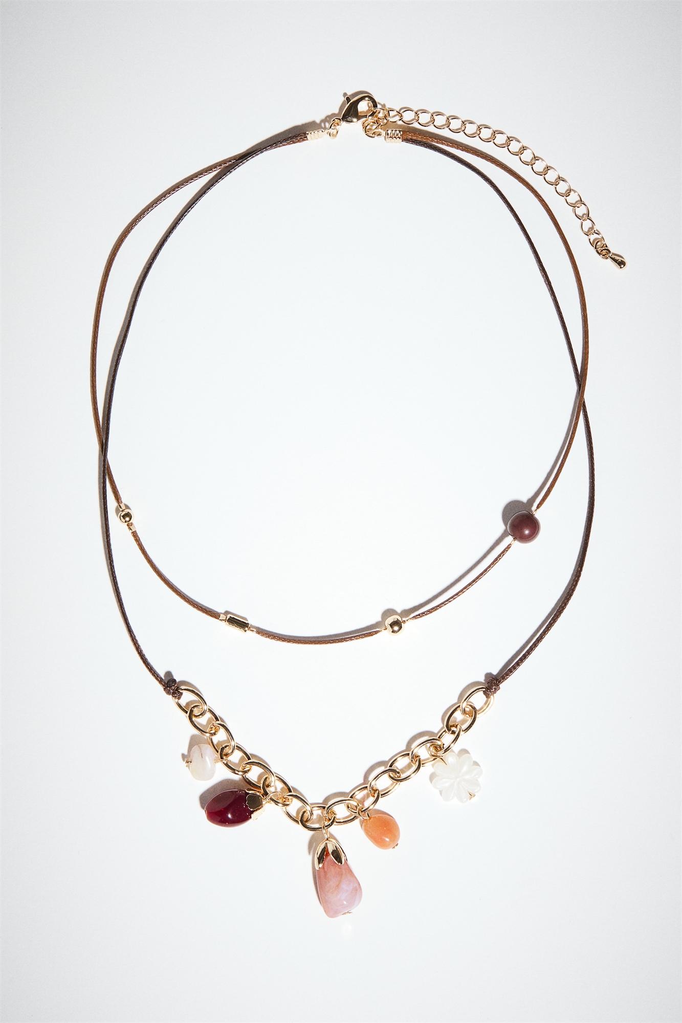 Ожерелье из двух шнуров с шармами разного дизайна. Регулируемая длина с застежкой-триггером.