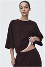 Топ из легкой толстовочной ткани с круглым вырезом, отделанным ребрами, и рукавами реглан длиной 3/4. Ребрышки на подоле.