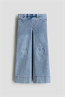 Джеггинсы из плотного денимного трикотажа с регулируемой эластичной резинкой на талии и фальшивой ширинкой. Широкие ноги.