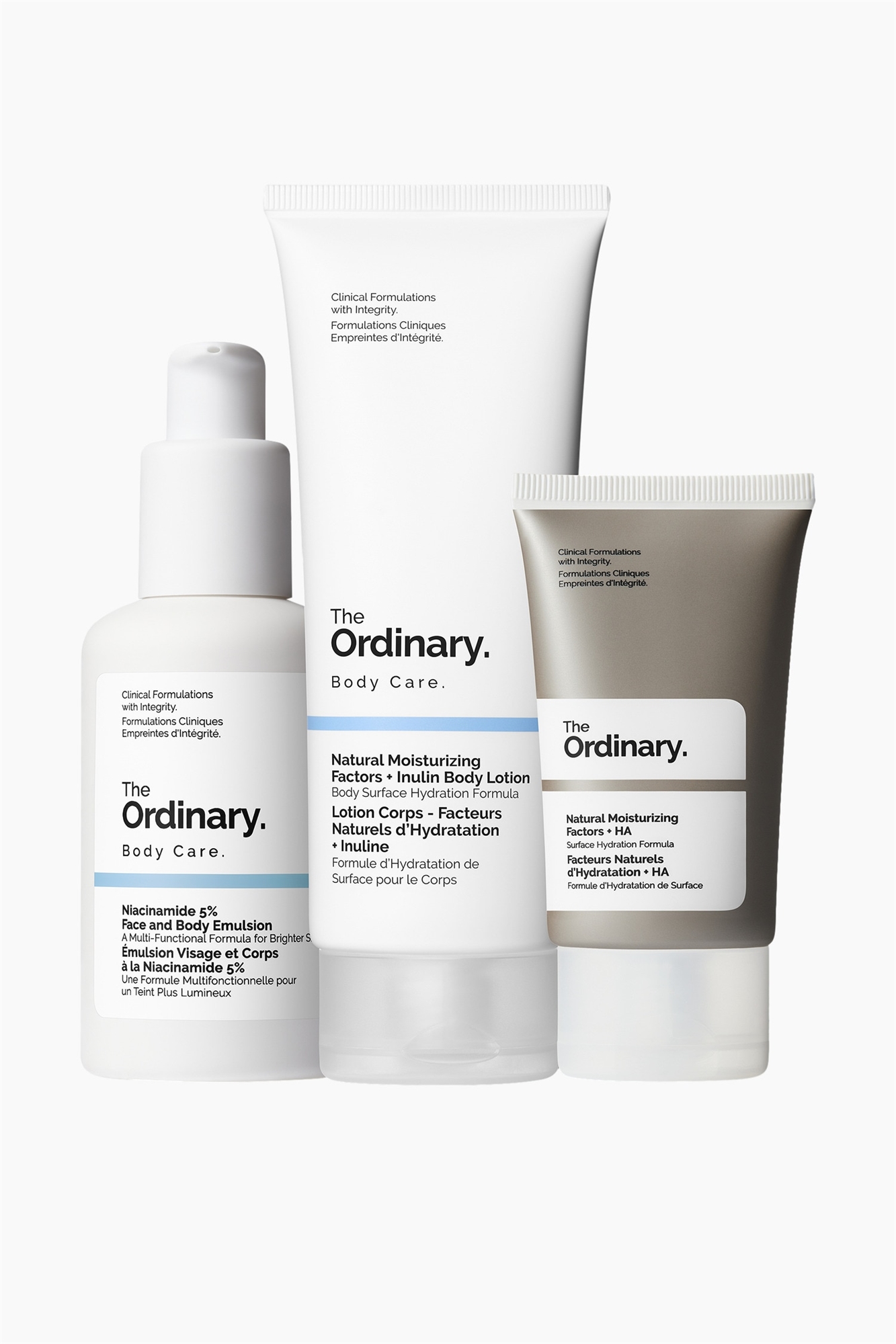 Набор Face & Body Set содержит ряд целевых составов с ингредиентами для ухода за кожей лица и тела. Эмульсия для лица и тела с ниацинамидом 5% - многофункциональная полноразмерная формула, которая помогает уменьшить темные пятна на лице и теле, делая тон кожи более ровным. Лосьон для тела Natural Moisturising Factors + Inulin Body Lotion - легкий лосьон для тела для всех типов кожи, который увлажняет кожу даже после мытья. Natural Moisturizing Factors + HA - ежедневный увлажняющий крем для лица, который подходит для всех типов кожи. Он укрепляет кожный барьер и увлажняет кожу сразу и в течение всего дня.