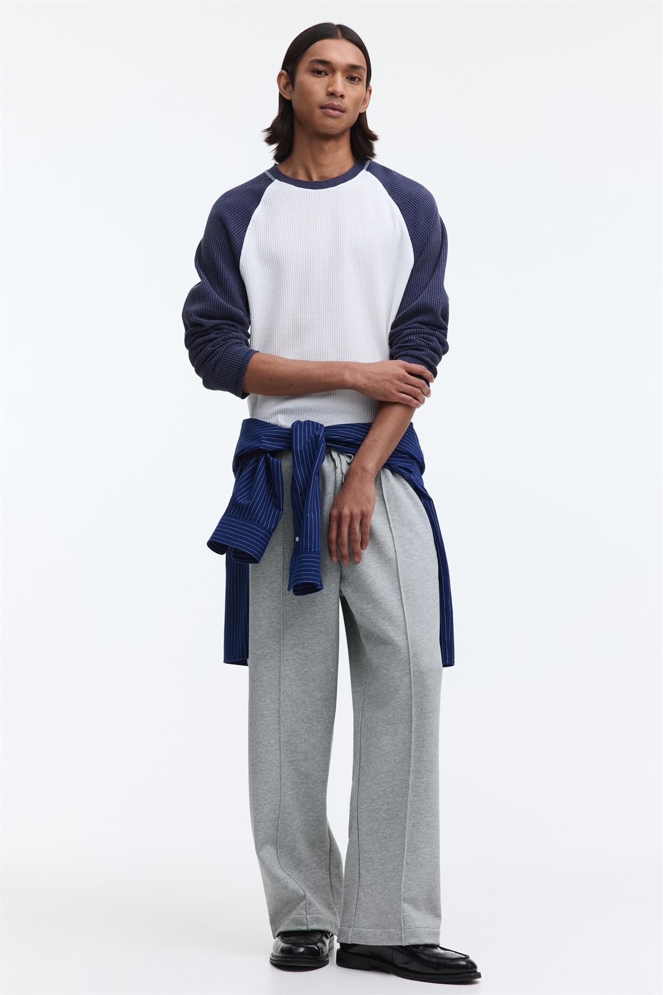 Джоггеры из хлопкового джерси с вшитыми складками спереди. Эластичный пояс на шнурке, имитация ширинки, боковые карманы и накладной карман сзади. Свободный крой для повседневного, но не слишком объемного силуэта.