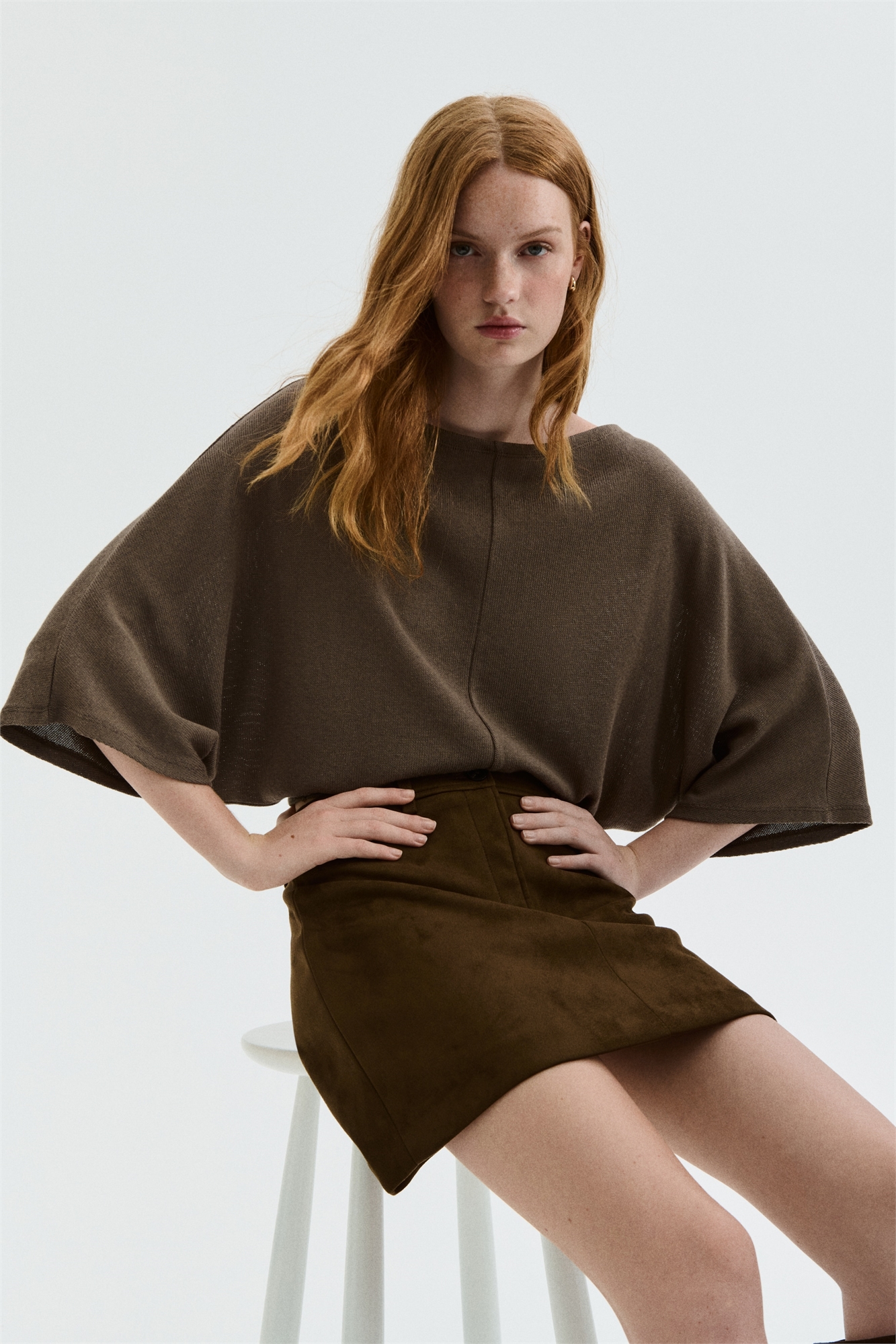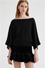 Топ оверсайз из тонкого трикотажа с широким вырезом-лодочкой, рукавами длиной 3/4 и прямым покроем.
