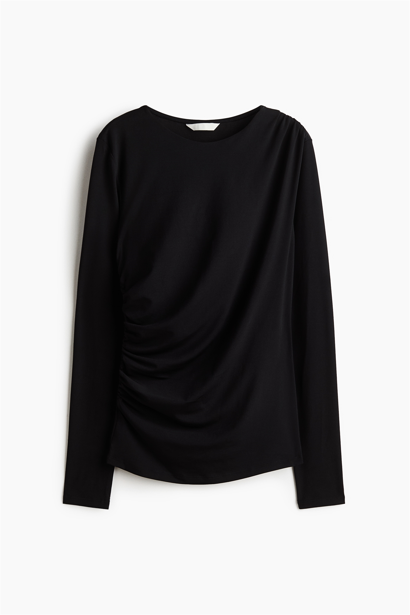 Облегающий топ с длинными рукавами из крепового джерси с круглым вырезом. Собранные на одном плече и на одной стороне, создающие эффект легкой драпировки.