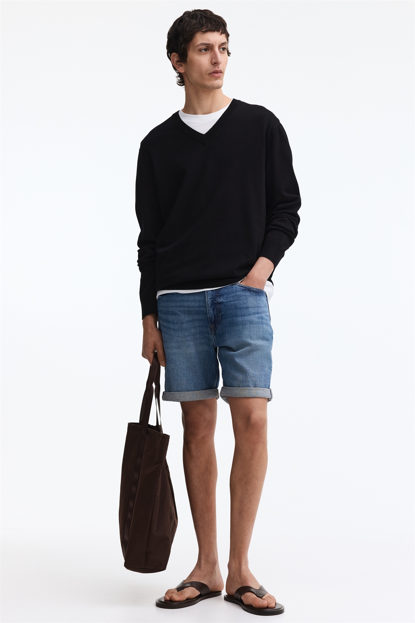 Шорты с 5 карманами из хлопкового денима с небольшим добавлением эластана для максимального комфорта. Прямой крой и зауженный силуэт от талии через бедра до низа. Стандартная посадка по талии, застежка-молния и вшитые отвороты по низу.