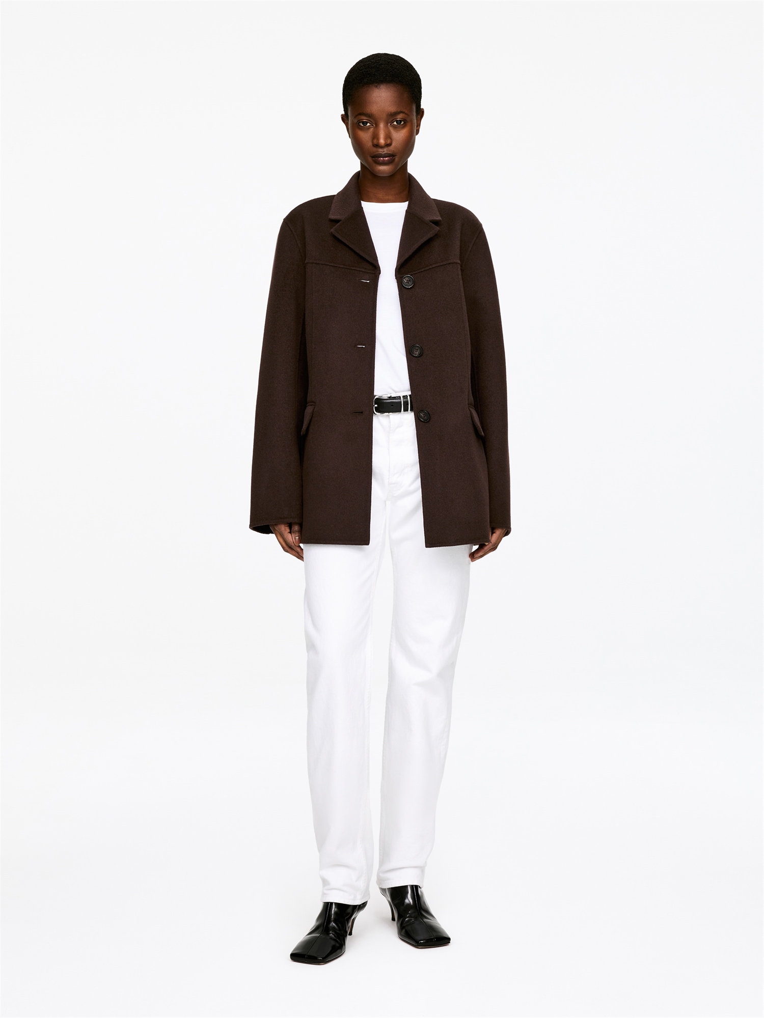 Этот однобортный блейзер из двусторонней шерсти отличается изысканным минималистичным дизайном. Модель с застежкой на три пуговицы, нежными вытачками и карманами с клапанами.