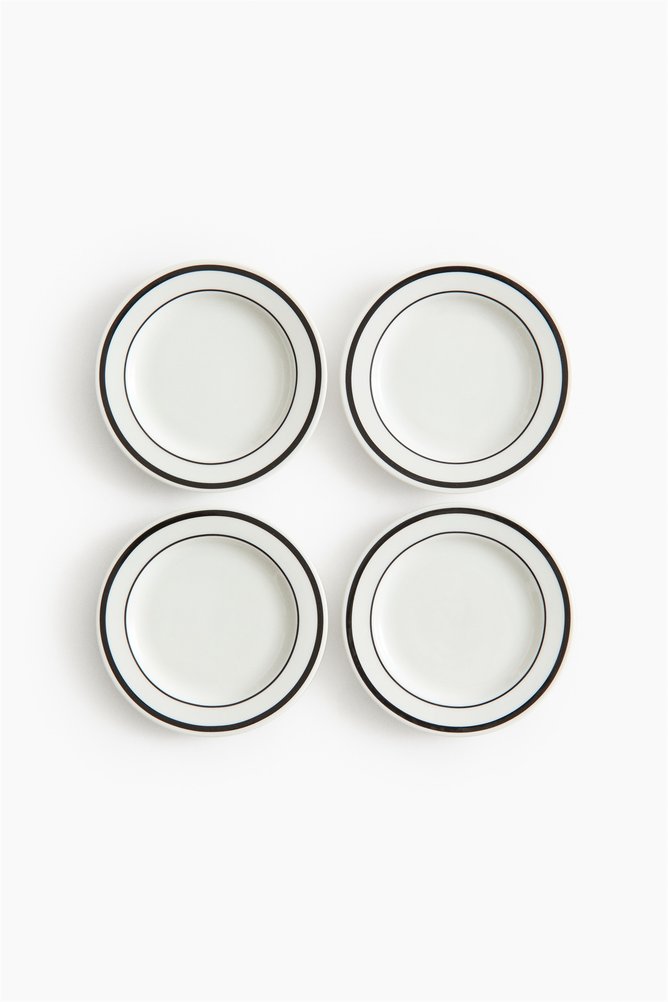 Набор из четырех фарфоровых боковых тарелок с классическими полосками, вдохновленный уютными французскими бистро.