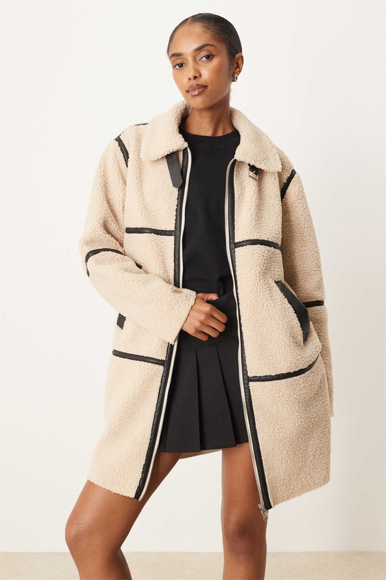 Пальто с контрастной окантовкой Borg кремового цвета