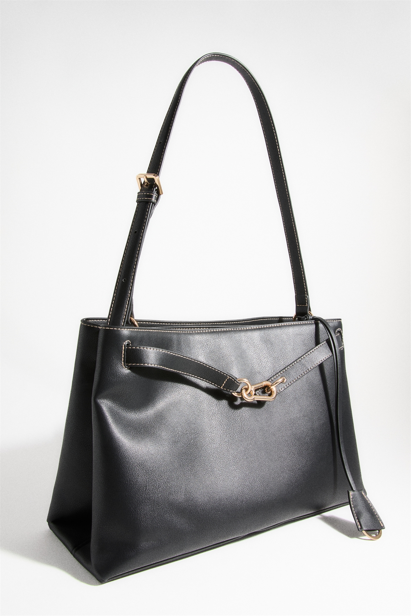 Сумка через плечо из ткани с покрытием, с регулируемым плечевым ремнем, перегородкой, разделяющей внутреннее пространство на два отделения, и внутренним отделением на молнии. Ремешок по верхнему краю с карабинным крючком спереди и съемной биркой для сумки. На подкладке.