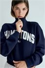 Топ большого размера из толстовки с мягкой ворсистой внутренней стороной и деталями из мотивов. Воротник-стойка на подкладке, застежка на молнии, спущенные плечи и длинные рукава. Манжеты и подол отделаны резинкой.