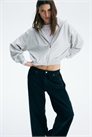 Короткий топ из легкой ткани для свитшотов с двухслойным капюшоном и застежкой-молнией спереди. Низкие спущенные плечи, длинные рукава и ребристые манжеты и подол.