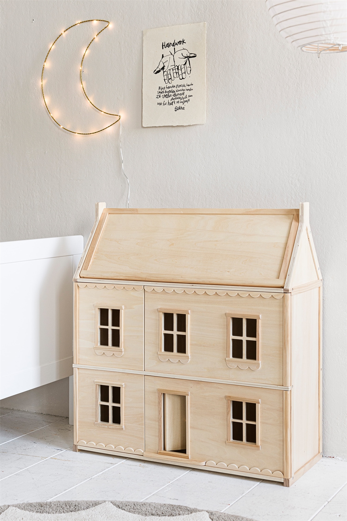 Деревянный кукольный домик La Parisienne способствует развитию воображения и ролевых игр детей в возрасте от 3 до 12 лет, позволяя им создавать свою собственную домашнюю обстановку и развивать социальные навыки. Натуральный деревянный вид и нестареющий дизайн располагают к творческому подходу к обустройству, а откидывающиеся фасад, двери и крыша способствуют развитию двигательной координации в процессе игры. Прочная многослойная древесина обеспечивает долговечность игры. Мебель и куклы приобретаются отдельно, рекомендуется для кукол размером до 10 см. Размеры: длина 64 см × ширина 28 см × высота 71 см.
