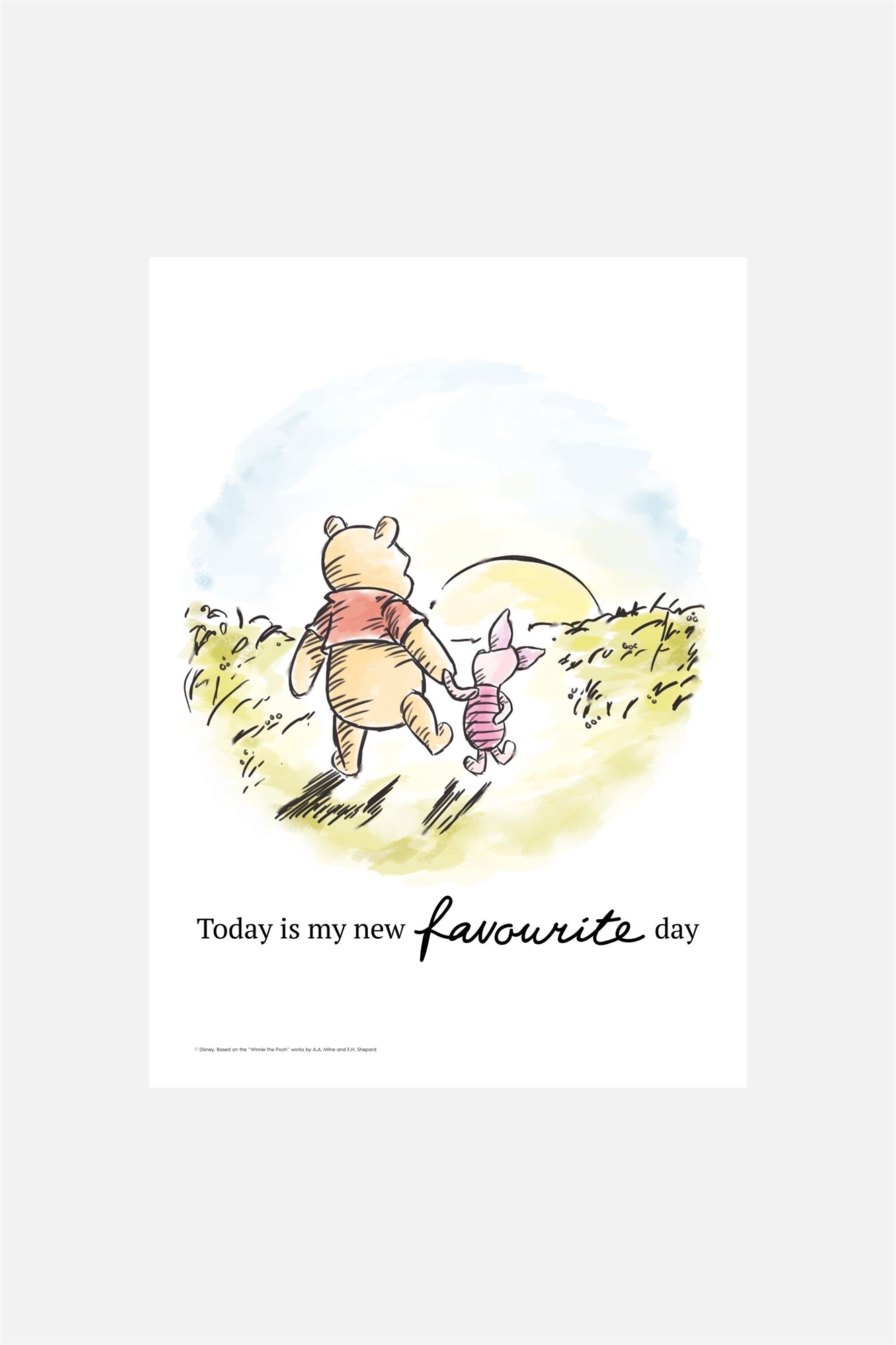 Рамка в комплект не входит. Винни-Пух и Пятачок прогуливаются рука об руку под золотым небом, а слова внизу напоминают нам о самых приятных моментах жизни. Эта душевная сцена придает мягкое сияние и сентиментальность, которая прекрасно впишется в уютное пространство.