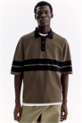 Рубашка-поло с короткими рукавами из мягкого трикотажа с воротником, планкой на пуговицах и прямым подолом. Свободный крой для просторного, но не слишком объемного силуэта.