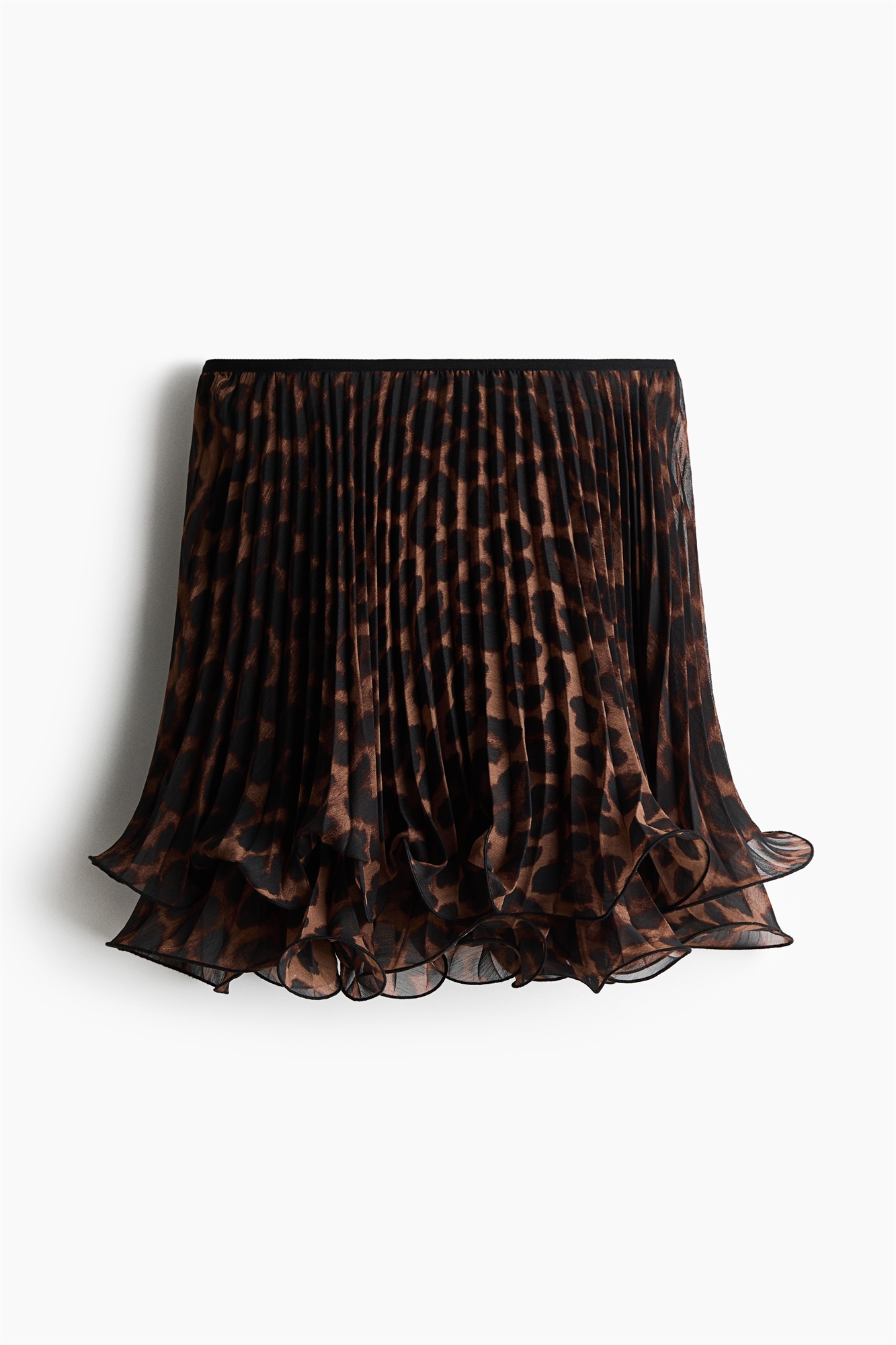Мини-юбка из двух слоев плиссированного шифона с оверлочными краями, создающими воланы на подоле. Высокая эластичная талия. Без подкладки.