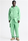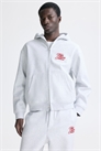 Толстовка на молнии в стиле бокс из плотной толстовочной ткани из смеси хлопка с мягкой начесом внутри. Капюшон с трикотажной подкладкой, застежка-молния спереди и передние карманы. Спущенные плечи, длинные рукава, манжеты и подол в рубчик. Свободный крой для пышного, но не чрезмерно большого силуэта.