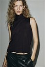 Топ без рукавов из мягкого тонкого трикотажа с драпирующейся черепаховой горловиной и широким шарфом-декором.