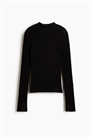 Облегающий топ с длинными рукавами из вискозной смеси в рубчик с блестящими нитями. Горловина в виде черепахи и цельнокроеные разрезы.