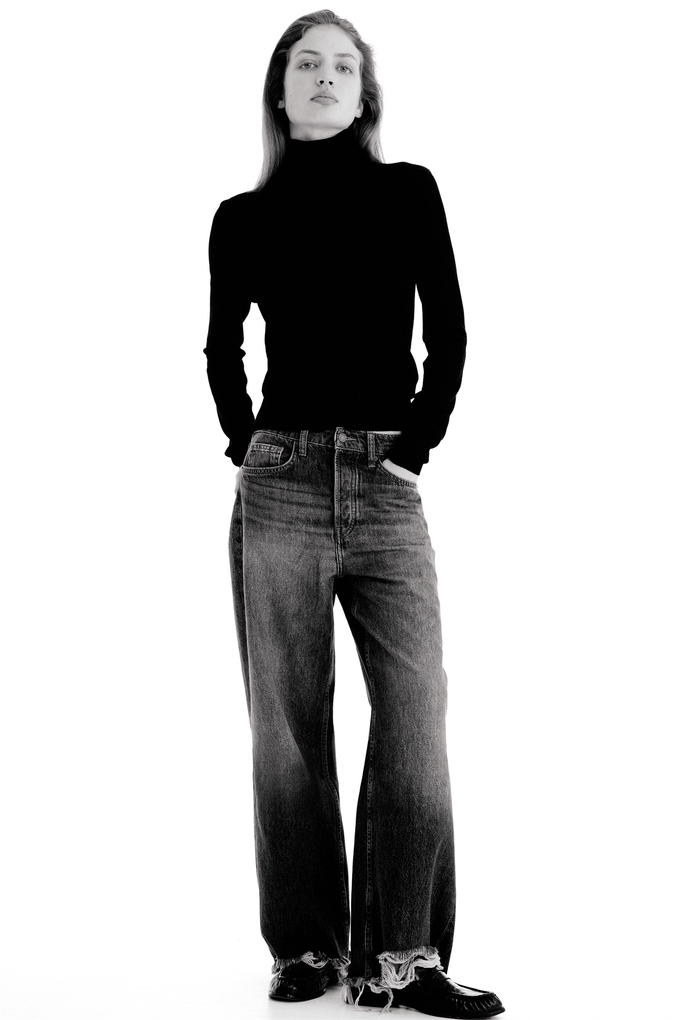 Джинсы с 5 карманами из прочного хлопкового денима с потертыми деталями. Эти джинсы сначала кажутся твердыми, а при частой носке становятся мягче и свободнее. Классический крой от талии до бедер и широкие штанины от бедра до конца штанины. Высокий пояс с ширинкой на пуговице. Эта модель сконструирована так, чтобы заканчиваться прямо у лодыжки.