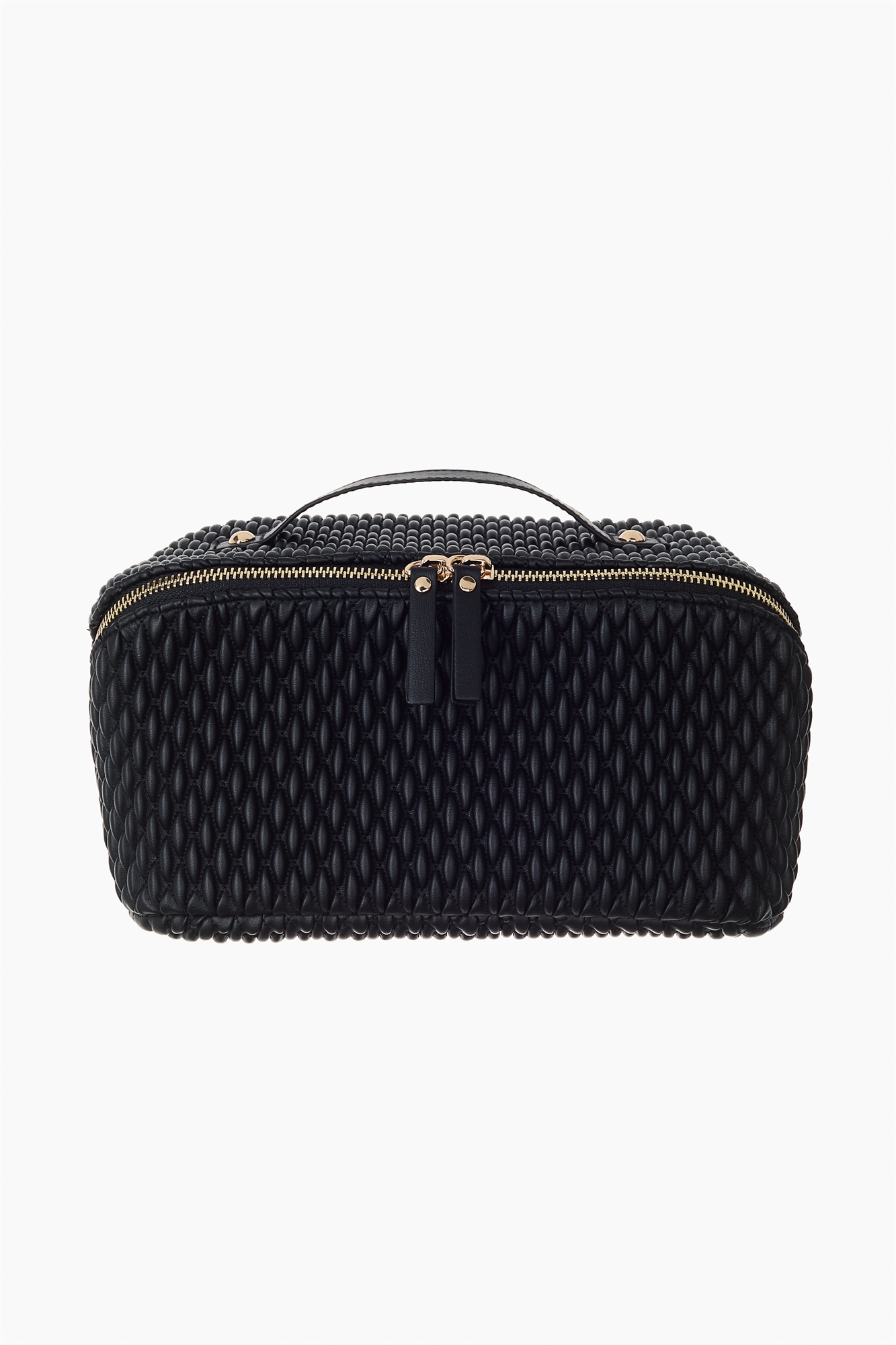 Вместительный мешок для стирки из стеганой ткани с покрытием и диагональной двусторонней молнией. Сумка полностью открывается и может быть разложена для удобного доступа к внутренним отделениям.