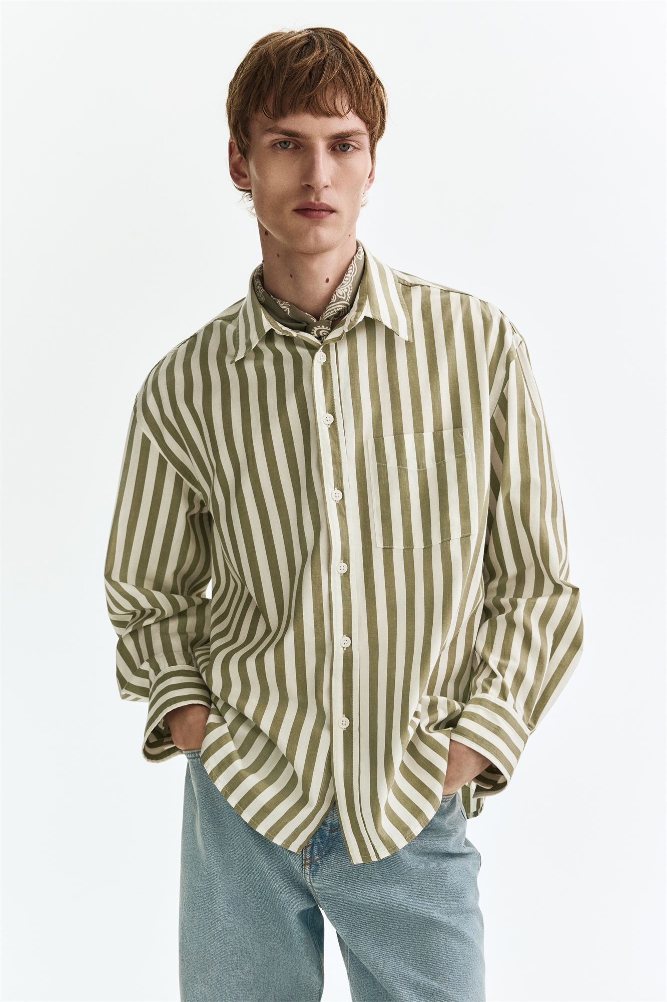 Рубашка из хлопкового поплина с отложным воротником, классическим фасоном спереди, кокеткой сзади с складкой и открытым нагрудным карманом. Длинные рукава с регулируемой застежкой на манжетах и слегка закругленным подолом. Свободный крой для непринужденного, но не слишком объемного силуэта.