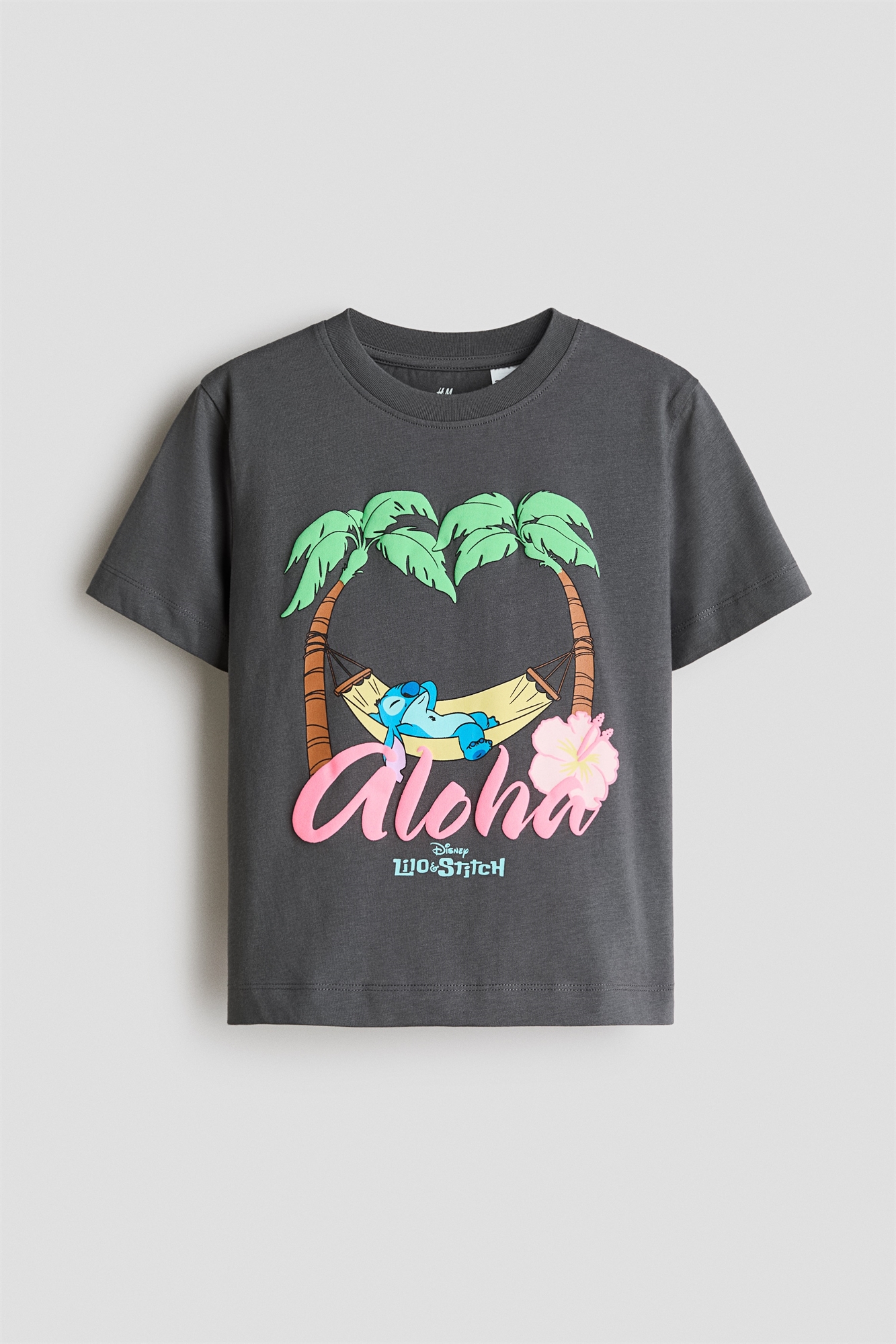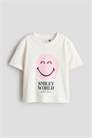 Футболка из мягкого хлопкового джерси с принтом на груди. Круглый вырез с ребристой отделкой и слегка заниженные плечи.