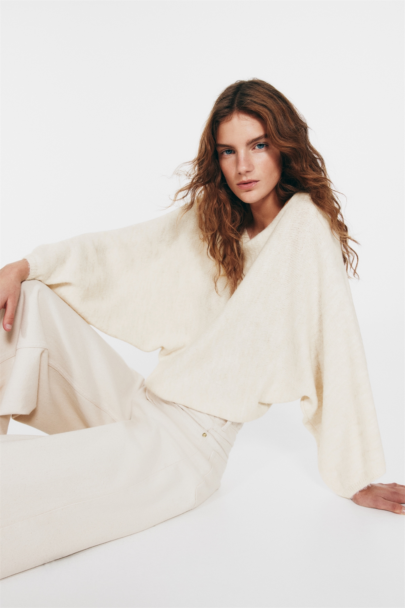 Джемпер свободного кроя из мягкого трикотажа с вырезом-лодочкой и рукавами "летучая мышь" длиной 3/4.