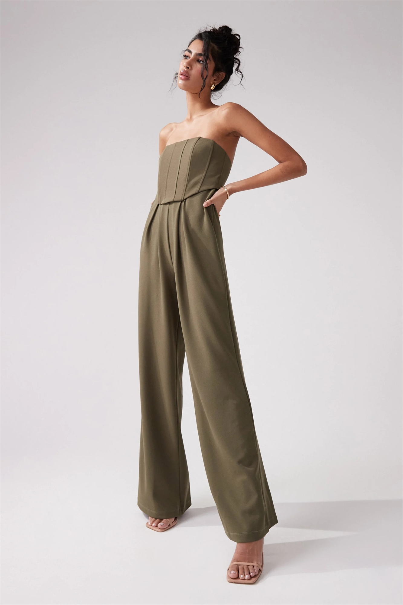 Комбинезон с бандо-корсетом и широкими брючинами