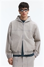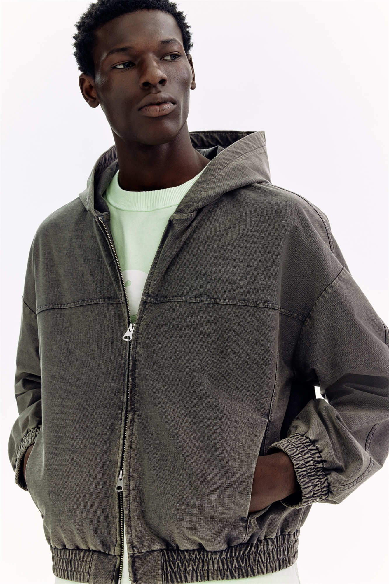 Куртка из прочного джерси с капюшоном, застежкой-молнией спереди и незаметными боковыми карманами. Спущенные плечи, кокетка спереди и кокетка сзади, продолжающаяся по рукавам. Эластичные манжеты и подол.