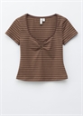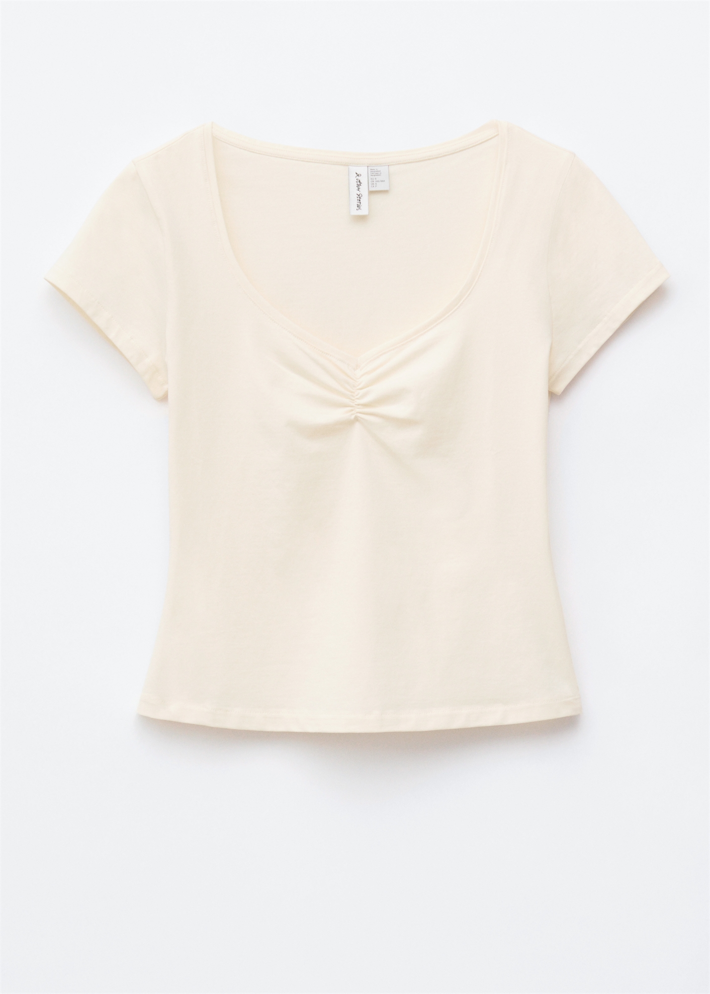 Этот топ облегающего кроя, сшитый из мягкого эластичного джерси, украшен рюшами в области груди, которые придают ему изящную текстуру и форму. Сочетайте его с синими джинсами для прогулки в солнечный день.