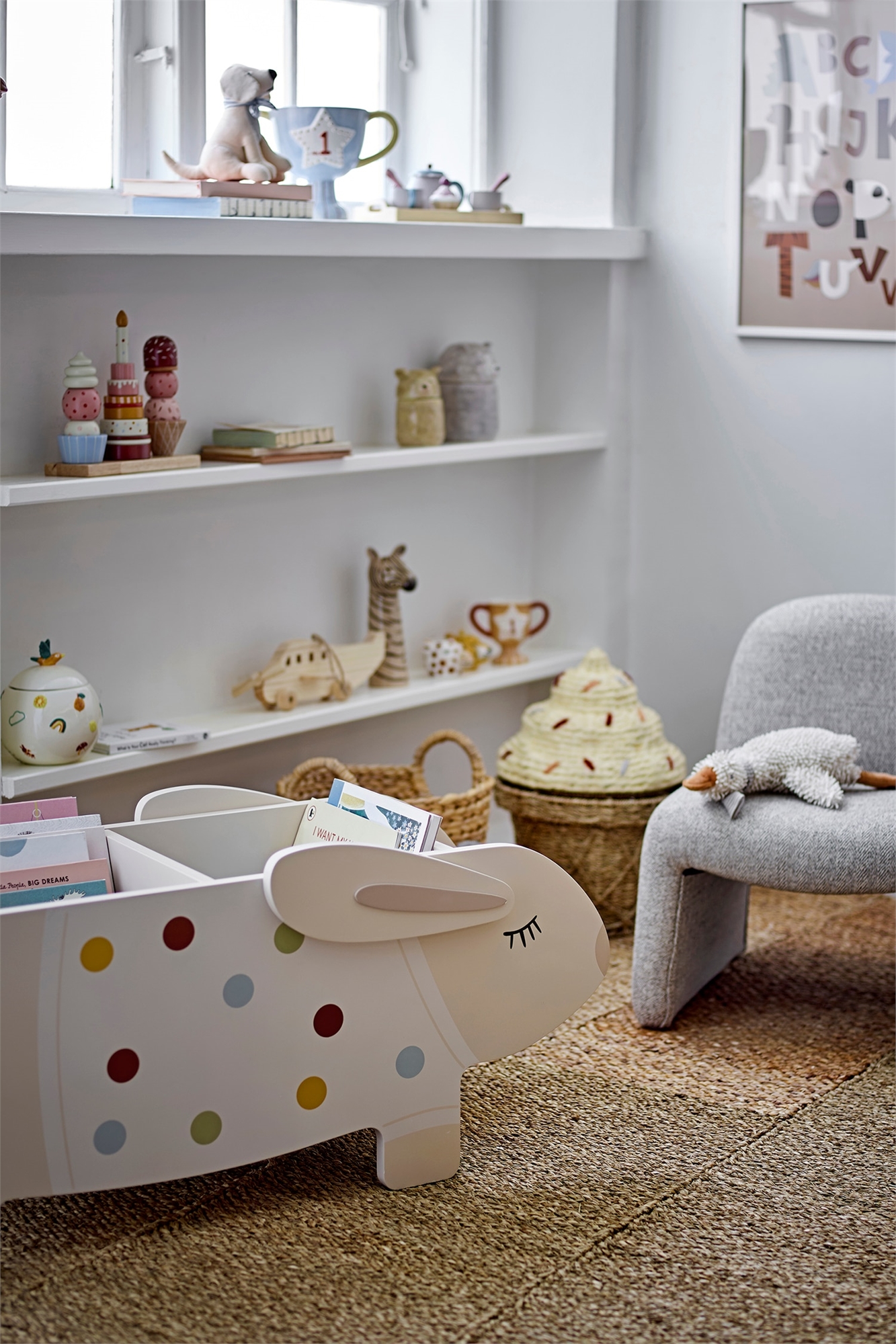 На книжном шкафу Villja от Bloomingville MINI изображен милый кролик в джемпере в горошек. Обеспечивает отделения и место для хранения книг и игрушек в детской комнате.L87xH38xW32 см