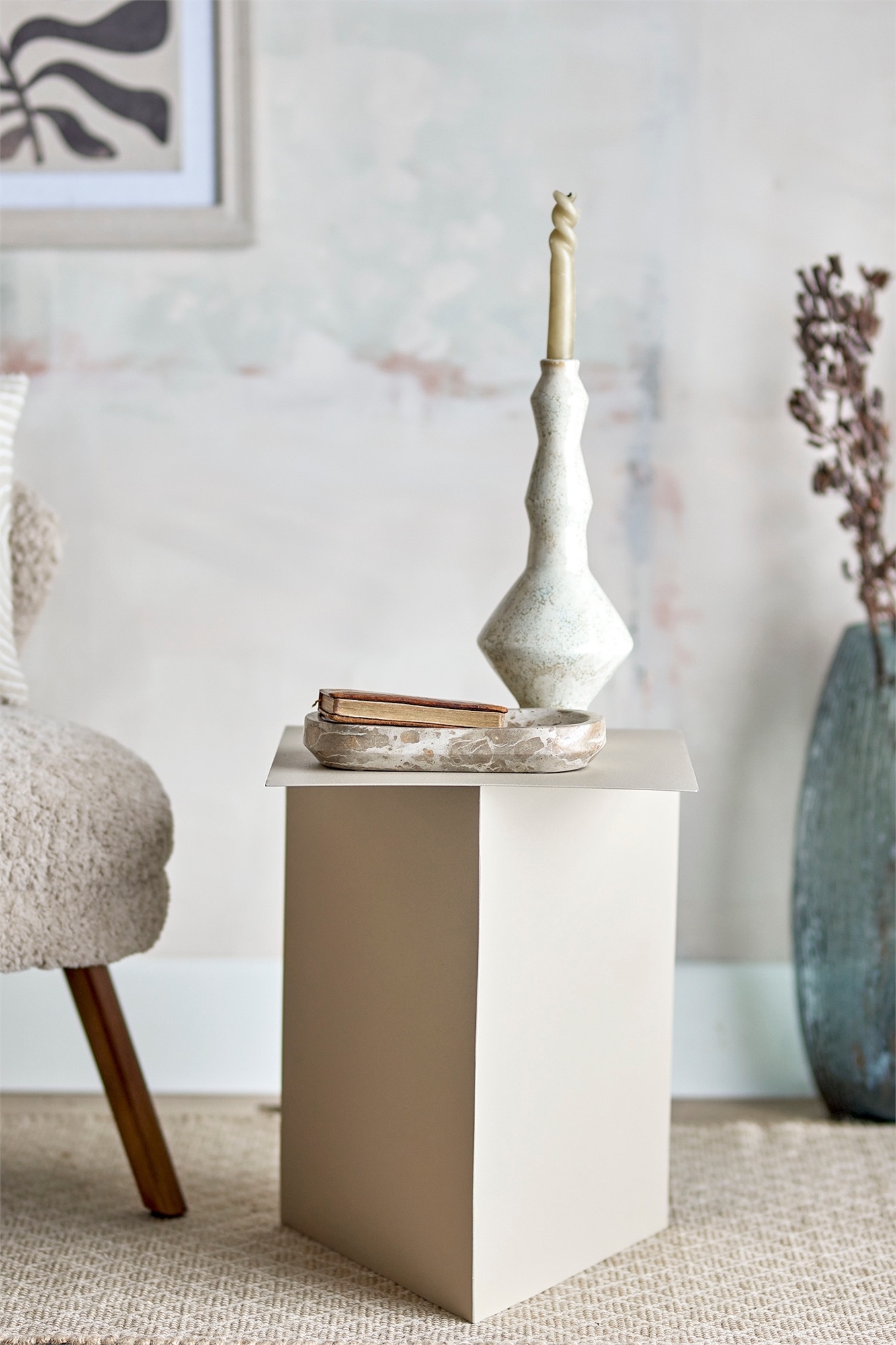 Приставной столик Tasha от Bloomingville изготовлен из лакированного металла и имеет простой, скульптурный вид в натуральном бежевом цвете. Столик функционирует и как приставной столик, и как практичная полка с пространством под столешницей - идеальный вариант для небольших комнат или как гибкий предмет мебели.L35xH45xW35 см