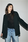 Облегающий топ с длинными рукавами из кружевного трикотажа с вырезом-лодочкой. Манжеты и подол отделаны оверлоком.