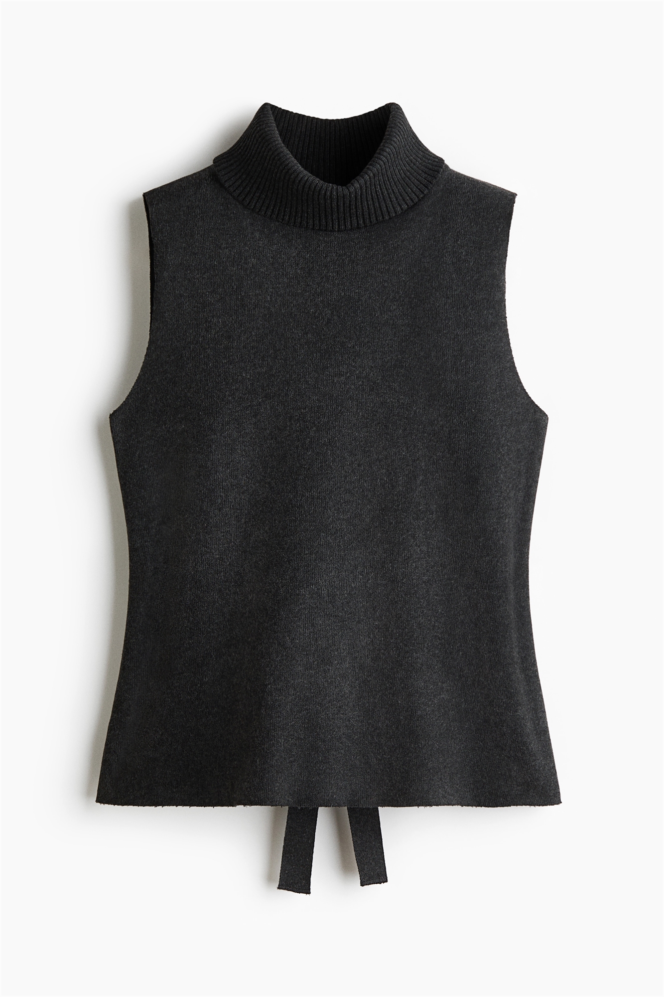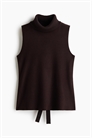 Трикотажный топ из мягкого хлопкового микса с ребристой водолазкой и завязками на талии.