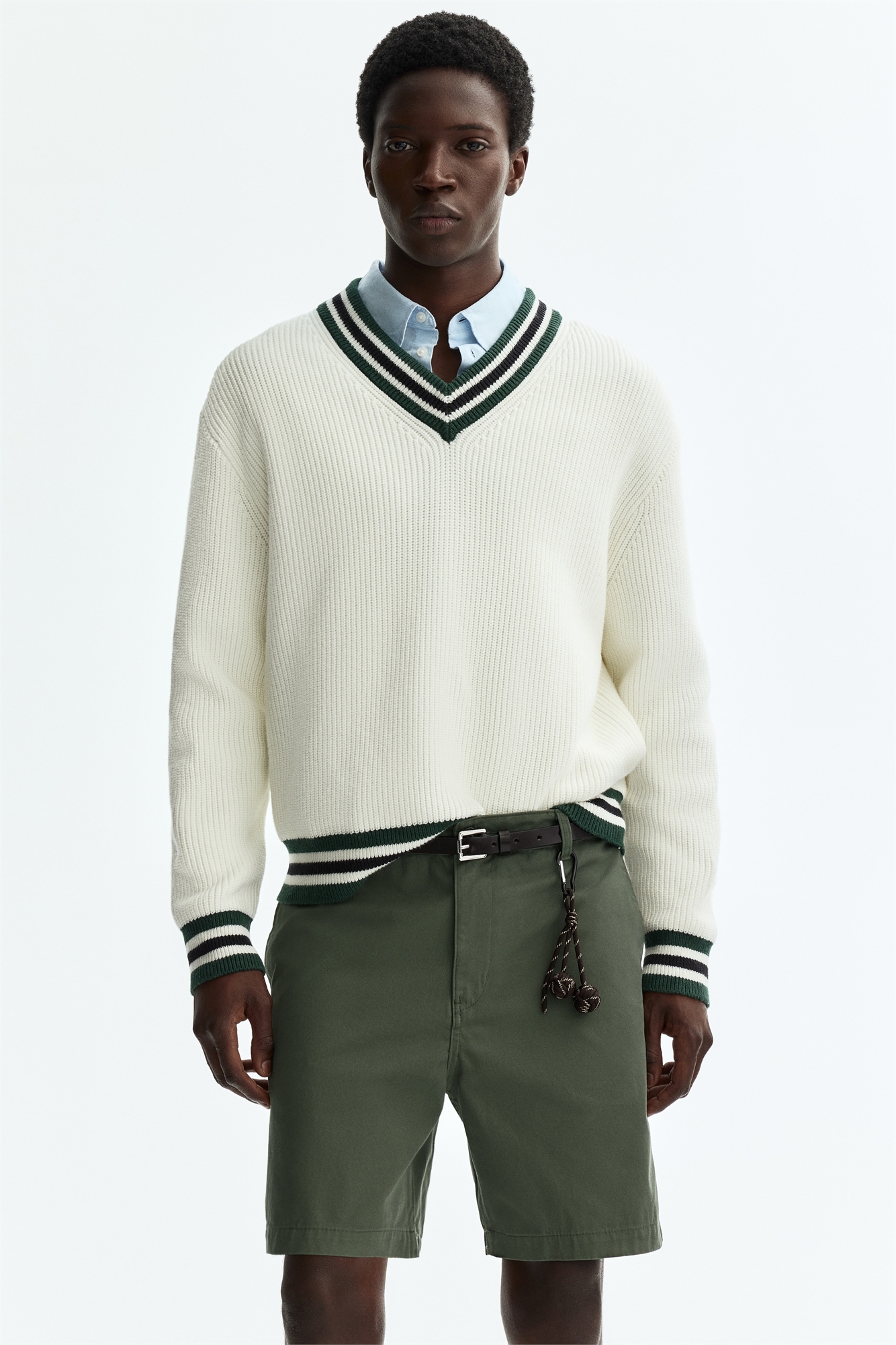 Шорты-чино из мягкого хлопкового твила с застежкой-молнией и пуговицей, боковыми карманами и задними карманами с отворотом и пуговицей. Свободный крой, создающий непринужденный, но не мешковатый силуэт.