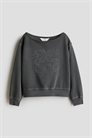 Оверсайз-топ с открытыми плечами из легкой ткани для свитшотов с мотивом на груди. Спущенные плечи, длинные рукава и резинка на манжетах и по низу.