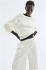Топ из мягкого тонкого трикотажа с круглым ребристым вырезом, рукавами 3/4 длины и ребристыми манжетами и подолом.