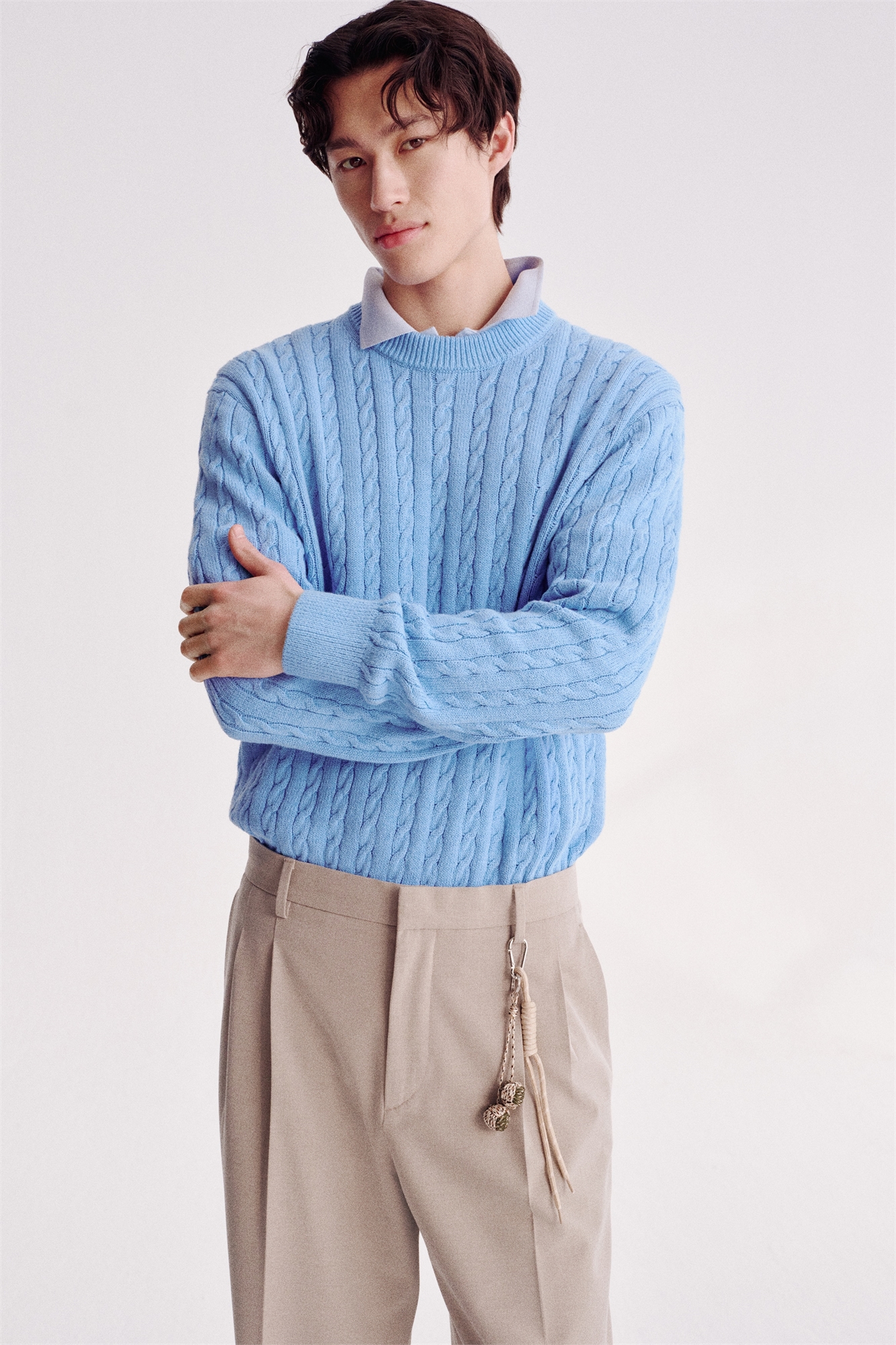 Джемпер из хлопка с узором «коса» с круглым вырезом с ребристой отделкой, длинными рукавами и ребристой отделкой на манжетах и по низу. Классический крой для комфортной носки и классического силуэта.