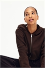 Короткая худи с капюшоном на молнии из легкой ткани для свитшотов, с капюшоном на джерси-подкладке и молнией спереди. Низкие спущенные плечи и длинные рукава с ребристыми манжетами, а также шнурок на подоле.