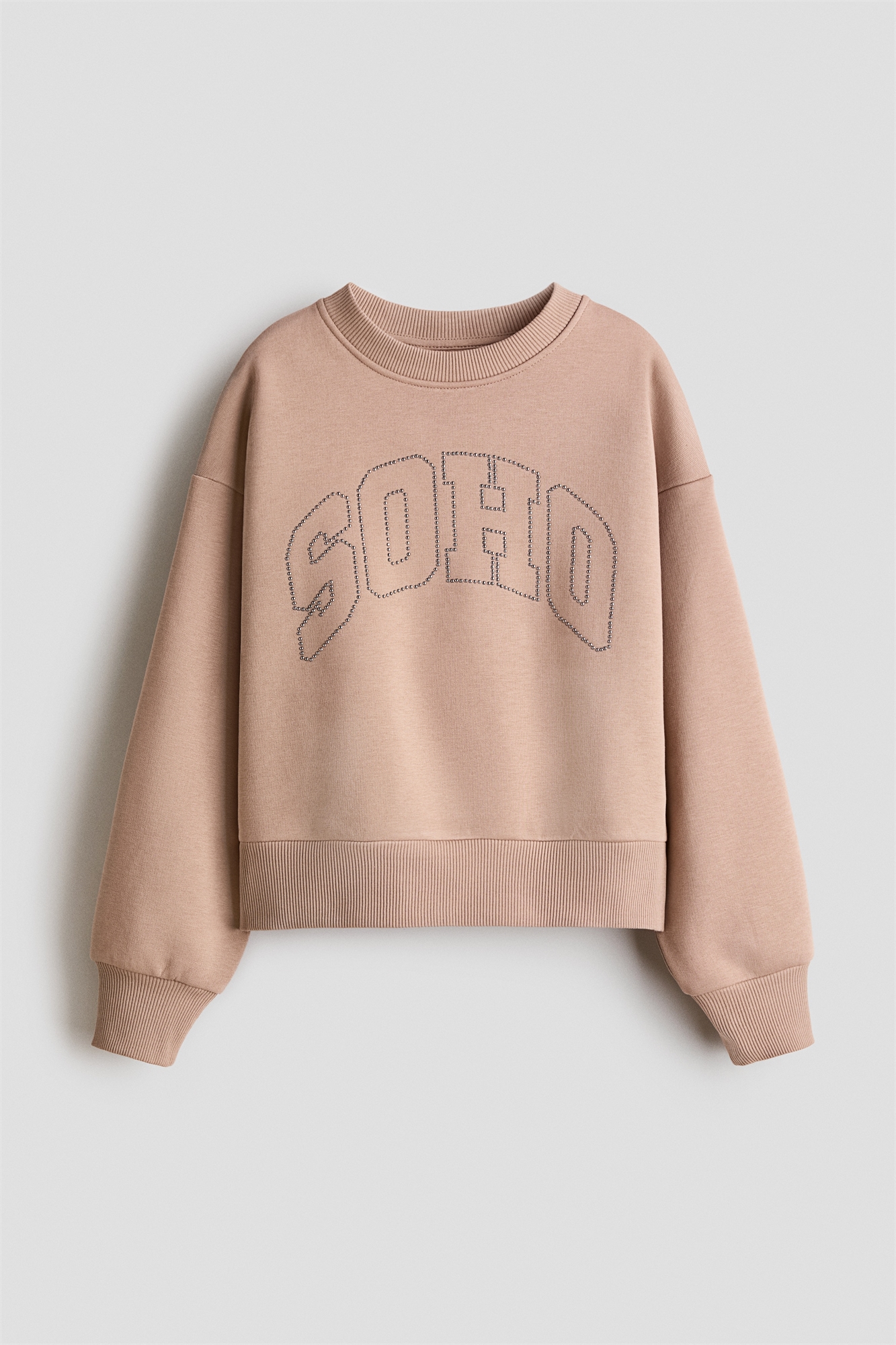 Топ из хлопкового бленда с мягким начесом внутри и деталями из мотивов. Ребристый вырез, спущенные плечи, манжеты и подол в рубчик.