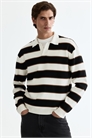 Рубашка-поло из мягкого трикотажа с воротником, небольшим V-образным вырезом сверху, длинными рукавами и резинкой на манжетах и по низу. Свободный крой для повседневного, но не слишком объемного силуэта.