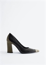 Эти кожаные туфли-лодочки, представляющие собой обновленную классическую модель, имеют заостренный носок и массивный каблук контрастного цвета, что придает им современный вид. Высота каблука: 9 см / 3,5 дюйма.